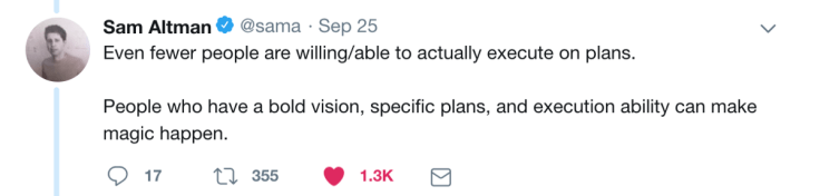 I was intrigued by this tweet from Sam Altman, the president of Y Combinator and an entrepreneur that I deeply admire. As always Sam is insightful and he has valuable advice for anyone who wants to be an entrepreneur.